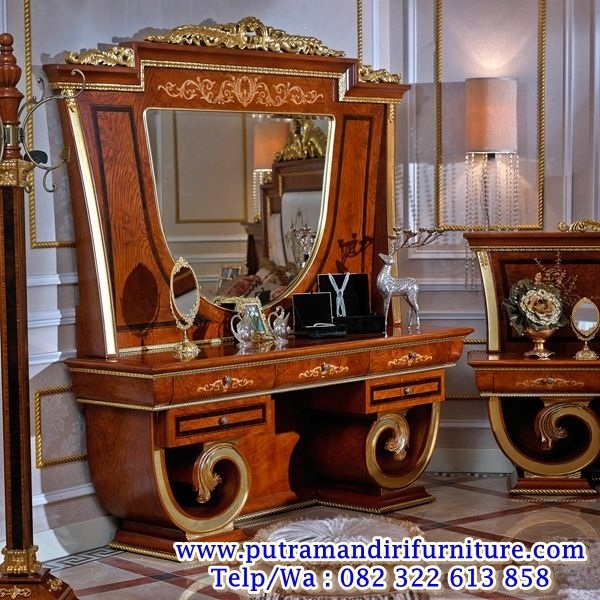 set meja rias adalah set yang digunakan rias penampilan. Set meja rias ini biasanya itaruh di samping tempat tidur kamar ruang tidur rumah. Tersedia set meja rias dalam berbagai desain modern , klasik dan mewah dengan model minimalis, modern dan ukiran. Lengkapi perabot kamar tidur anda dengan set meja rias kamar tidur mewah ini.