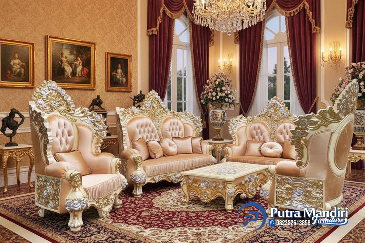 Set Sofa Tamu Mewah Full Emas Terbaru adalah model set kursi tamu elegan nan indah yang digunakan untuk set kursi ruang tamu di rumah. set sofa tamu ini tersedia dalam  berbagai model desain set sofa kursi jepara terbaru. Lengkapi set furniture kursi tamu rumah anda dengan pilihan produk unggulan dari putramandirifurniture.com